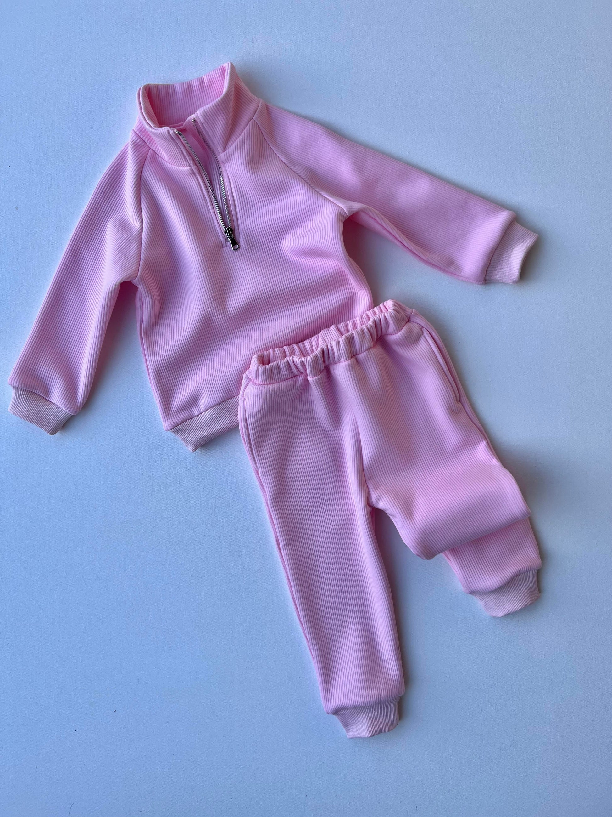 Peony Pink Fleece Ribbed Tracksuit